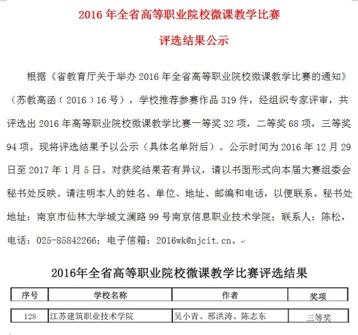 喜报—2016年全省高等职业院校微课教学比赛又传佳音