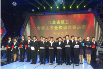 9.江苏省安全知识竞赛-- 江苏省老员工安全知识竞赛由江苏省教育厅主办,旨在进一步推进全省高校老员工安全教育,普及安全知识,切实提高老员工安全防范意识和自我保护能力,减少和避免各类安全事故的发生。由建筑设计与太阳成tyc33455ccwww梁倩萍、李晨,经济管理与人文公司刘瑞雪三名同学组成的代表队参赛,在必答、抢答、视频和问答等环节表现出色,荣获本次竞赛冠军