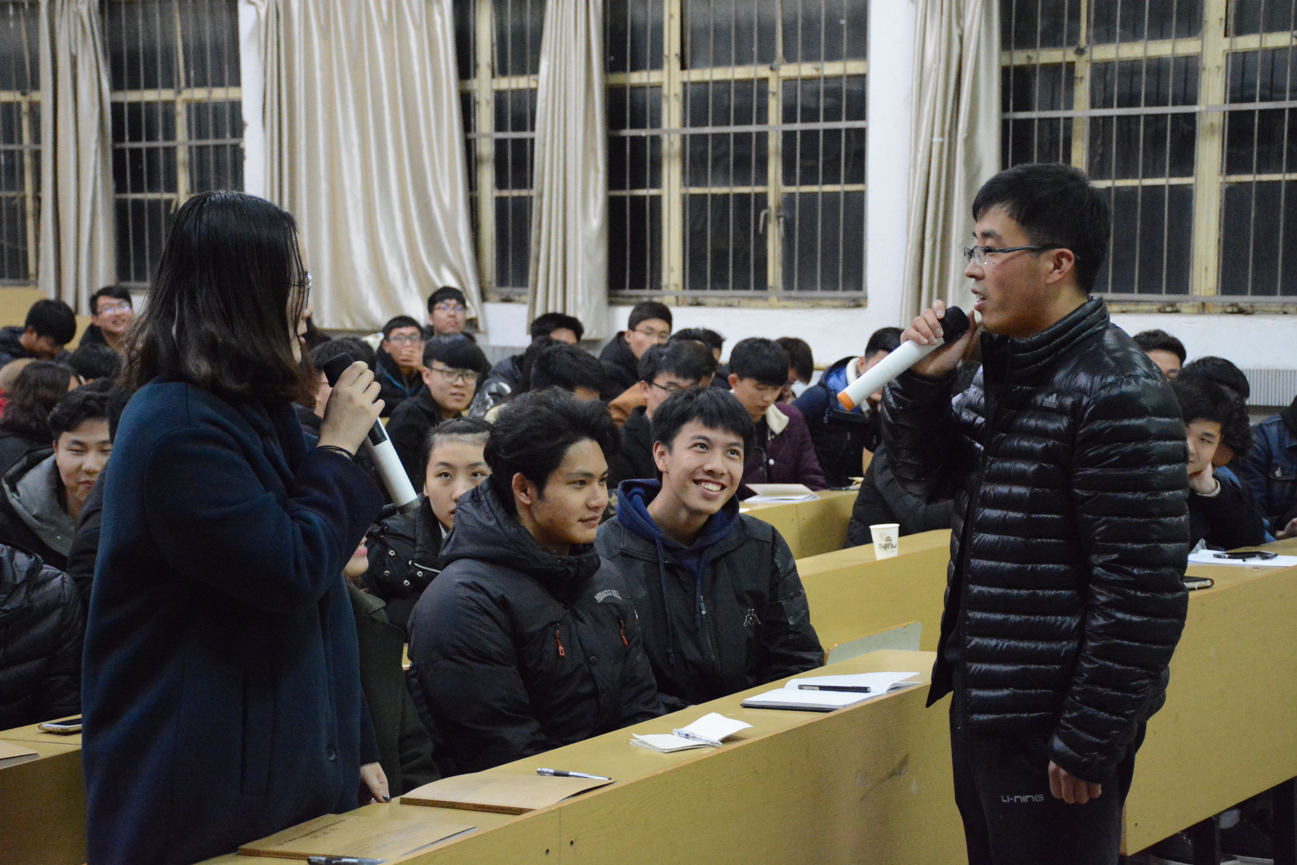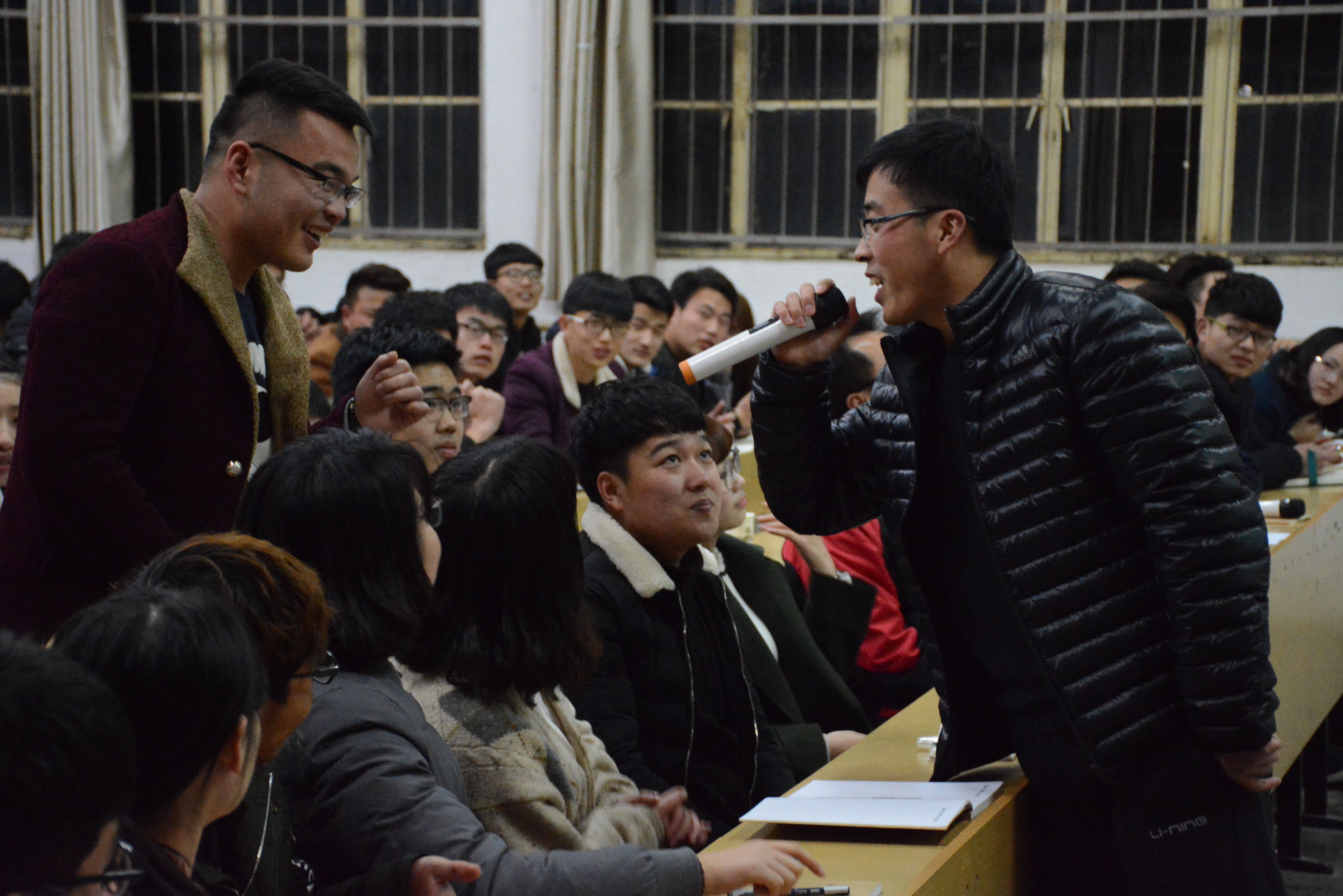 王元是本次心理活动的主讲老师,“心理团体活动是游戏,而游戏并不都是心理活动”,他告诉我们不能仅仅局限于玩游戏,更重要的是通过游戏来领悟其中的道理。一个“大风吹”的热身活动,让他们了解到和自己有同一个特征、兴趣、爱好的人有很多,自己从不孤单,只是暂时没有发现他们,他希望我们能够通过热身活动去发掘出一个个不同的团体,并能够在团体中展示自己的才能,结交朋友,融入集体;“左右手”活动中,团队围成圈,每个人的左手放在旁边同学的右手上,掌心相对,与腰平齐,经过1分钟、3分钟和5分钟共3次活动,从刚开始的陌生、害羞到后来的相互合作与帮助,分享环节有很多感人的瞬间,“在我疲惫时没有人放弃我”“我感到累的时候,下面有一只手托住了我”“我力气小,左手被托起右手被抓起”……很多同学被感动的掉下了眼泪。在王老师的带领下他们明白了左、右手分别代表“索取”与“奉献”,在团队里如何权衡两者关系,大家有了新的认识。