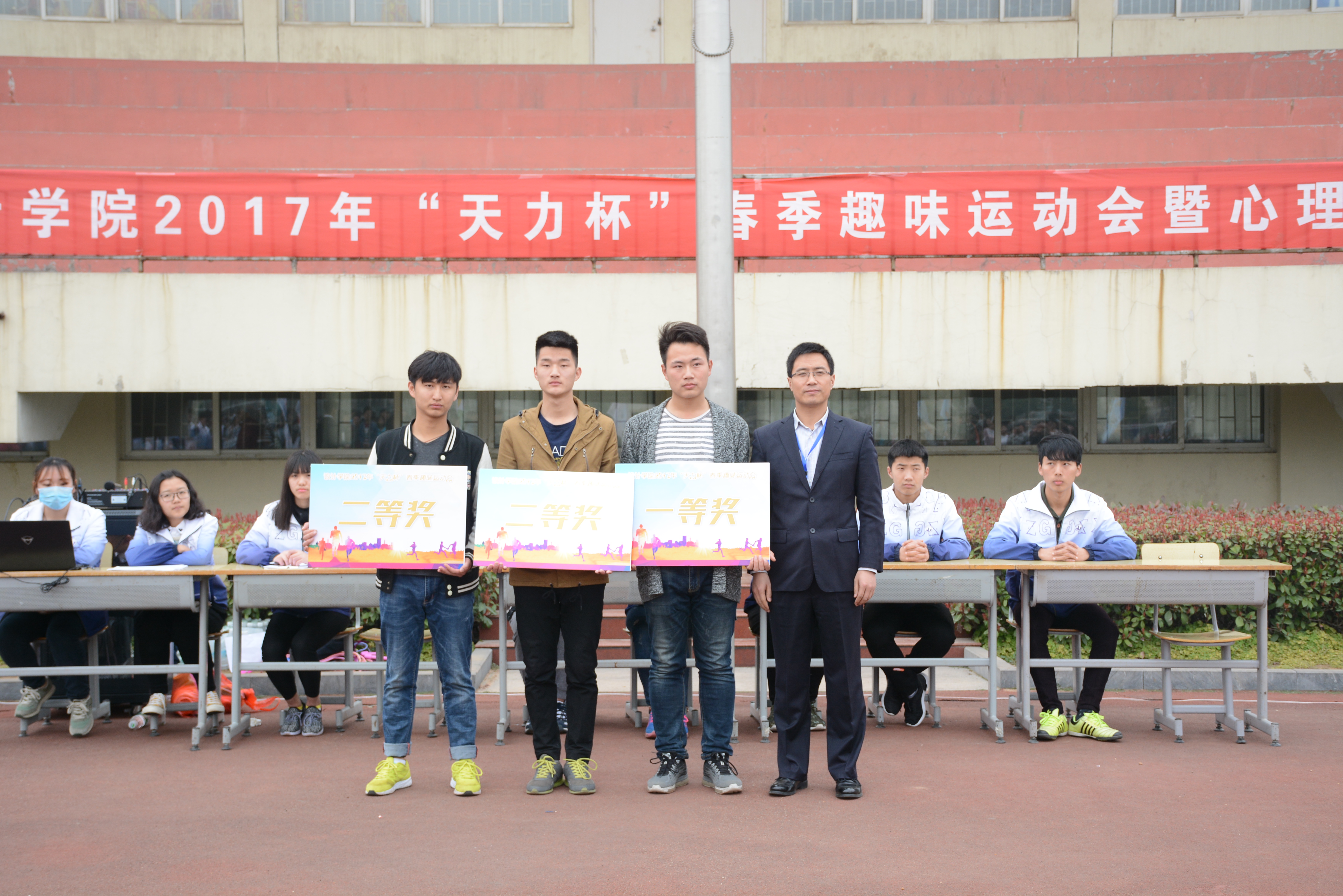 为深入学习《全国高校思想政治工作会议》精神,营造良好的校园心理健康文化氛围,2017年3月12日上午,建筑设计与太阳成tyc33455ccwww在泉山校区西操场举办了“天力杯”春季趣味运动会暨心理运动会,党总支副书记娄志刚、办公室主任黄阳、专职辅导员胡晓爽、张志荣、王元老师以及16级所有员工参加了本次运动会。