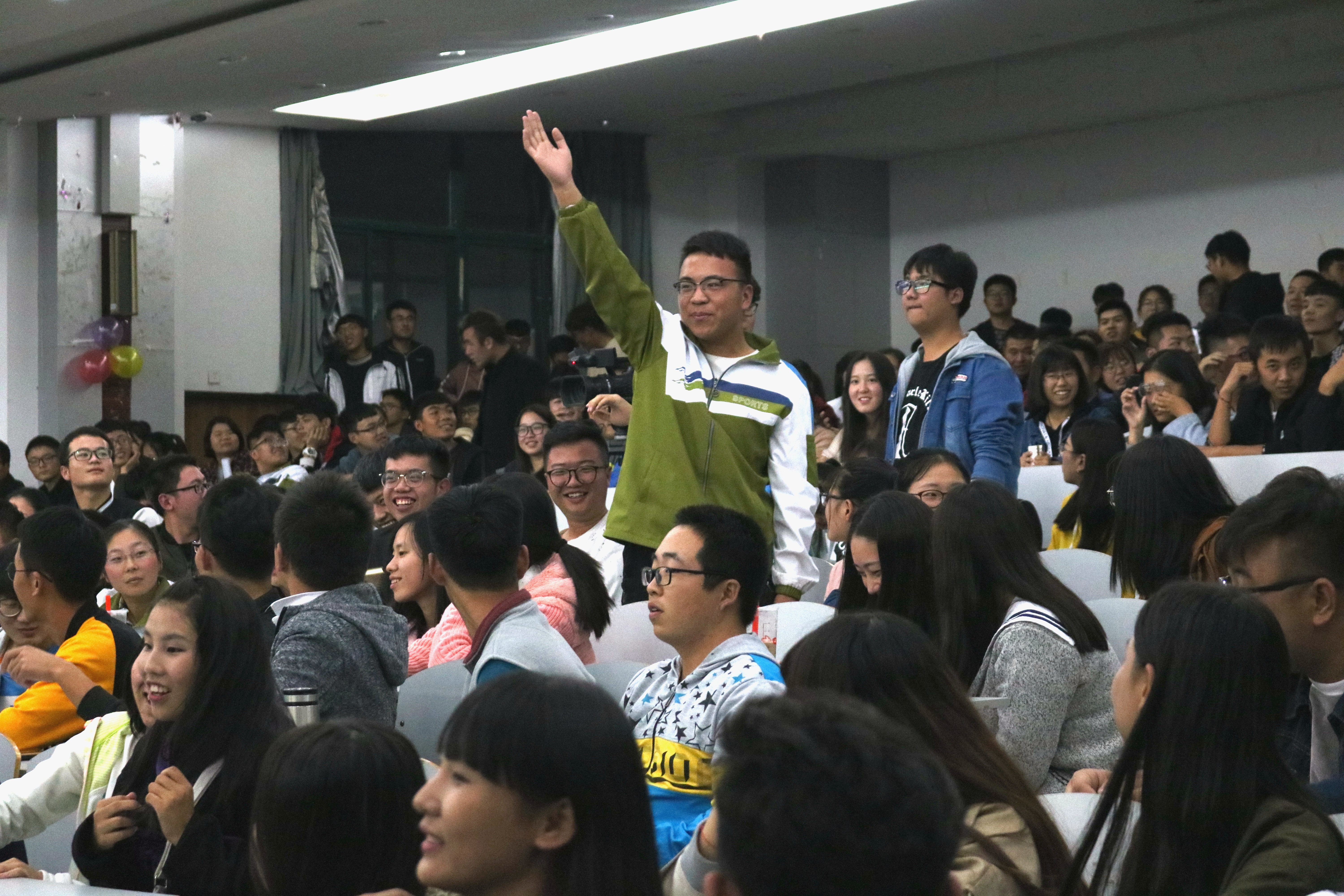 接下来为我们表演的是古典舞“礼仪之邦”。传统的服装,优美的舞姿,无不在向所有人展现着我们泱泱大国的文化之深、礼仪之美。有奖问答环节同学们也是相当的活跃,一个个关于十九大、中国梦等问题回答起来丝毫不费力气,随着同学们越来越积极踊跃的抢答,场内的气氛进入了活动的高潮!互动之后,小品“帮忙公司”向我们体现了我国一贯的传统美德—助人为乐,也给同学们以激励作用。
