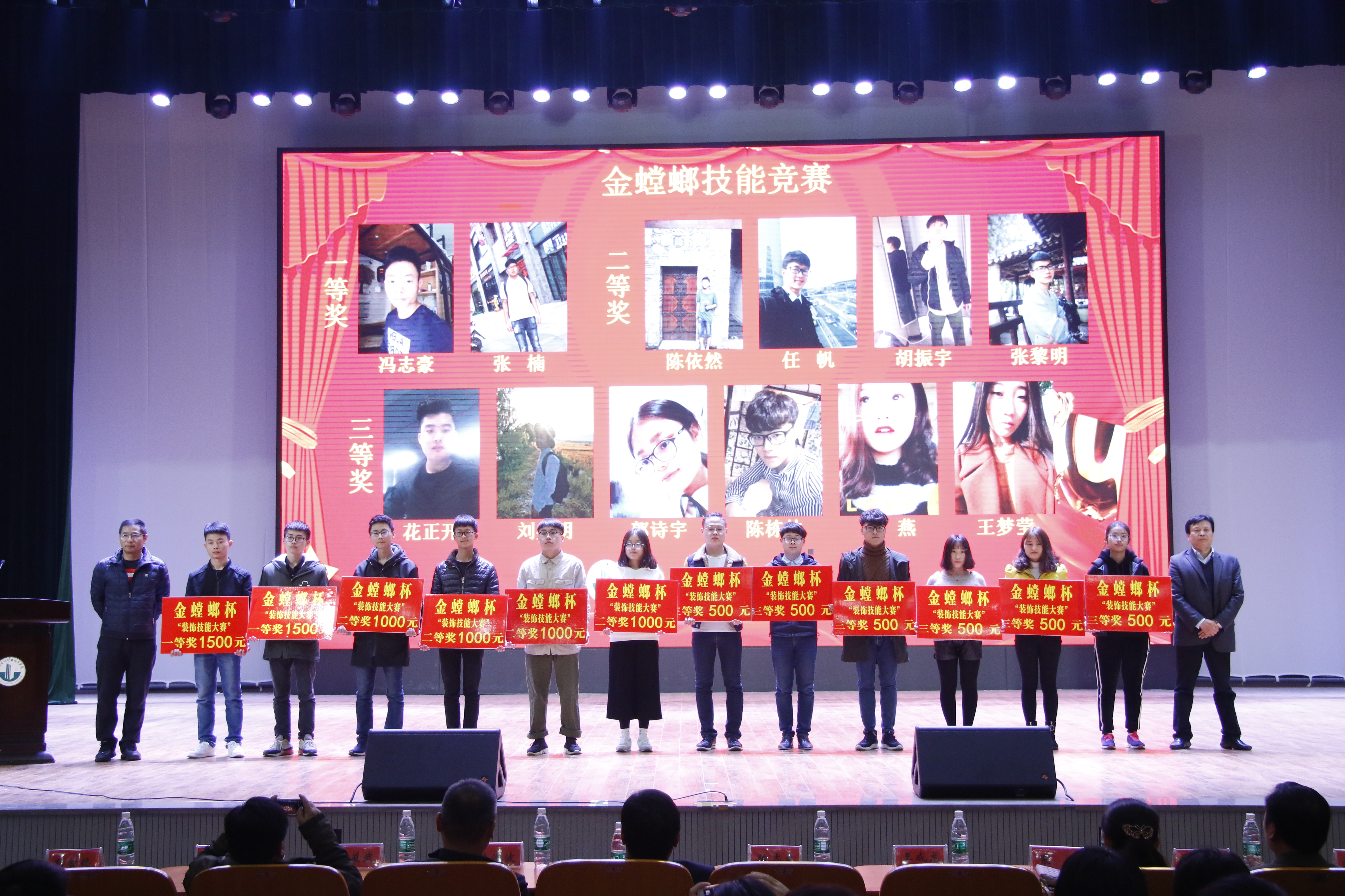 苏州金螳螂股份有限公司,苏州中衡设计集团股份有限公司,南通紫浪装饰装潢有限公司,江苏天正装饰有限公司,江苏水立方设计院,南通广安建设有限公司,江苏中矿佳安科技有限公司等七家企业负责人来校为员工颁发企业奖学金,颁发企业冠名技能竞赛奖金。