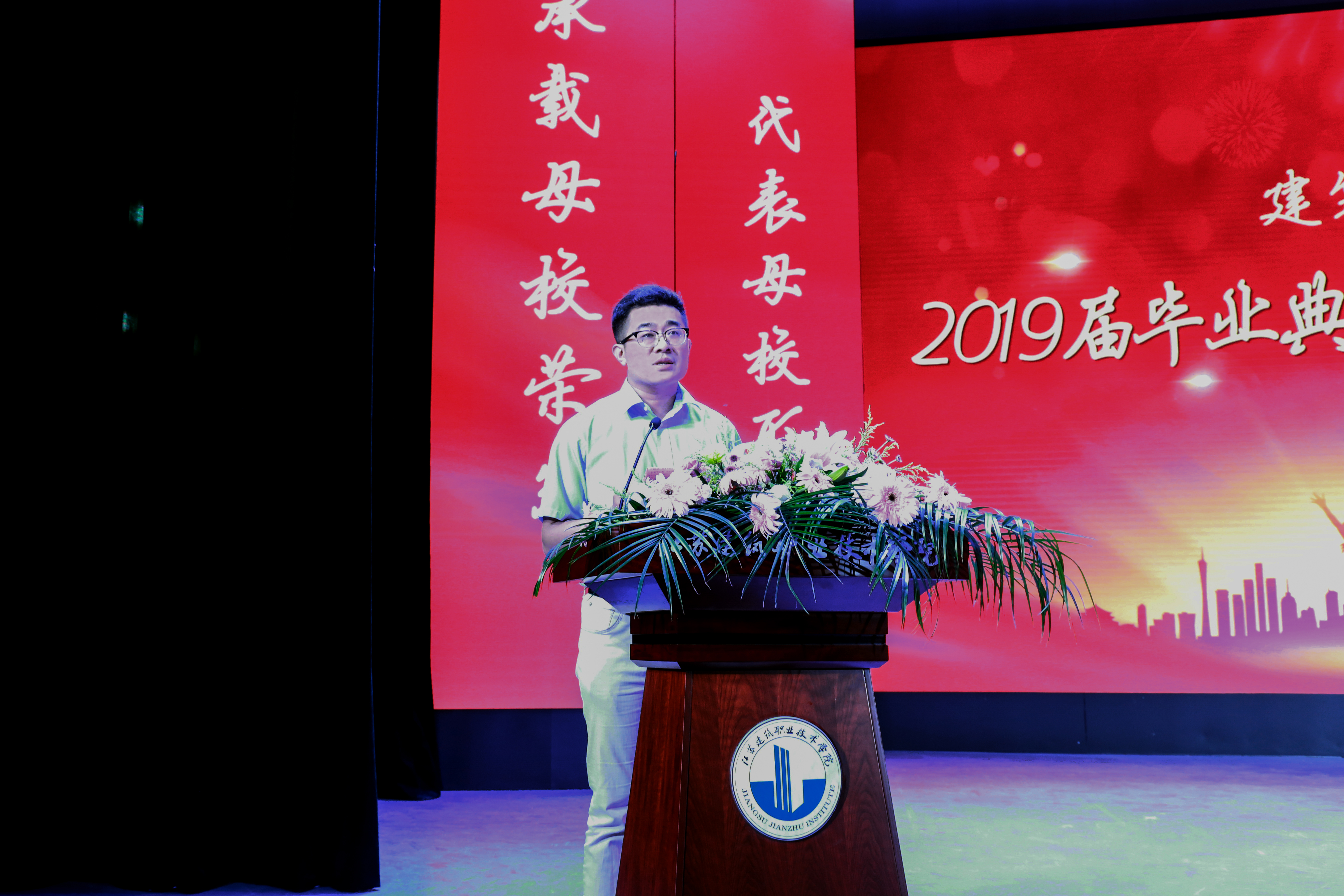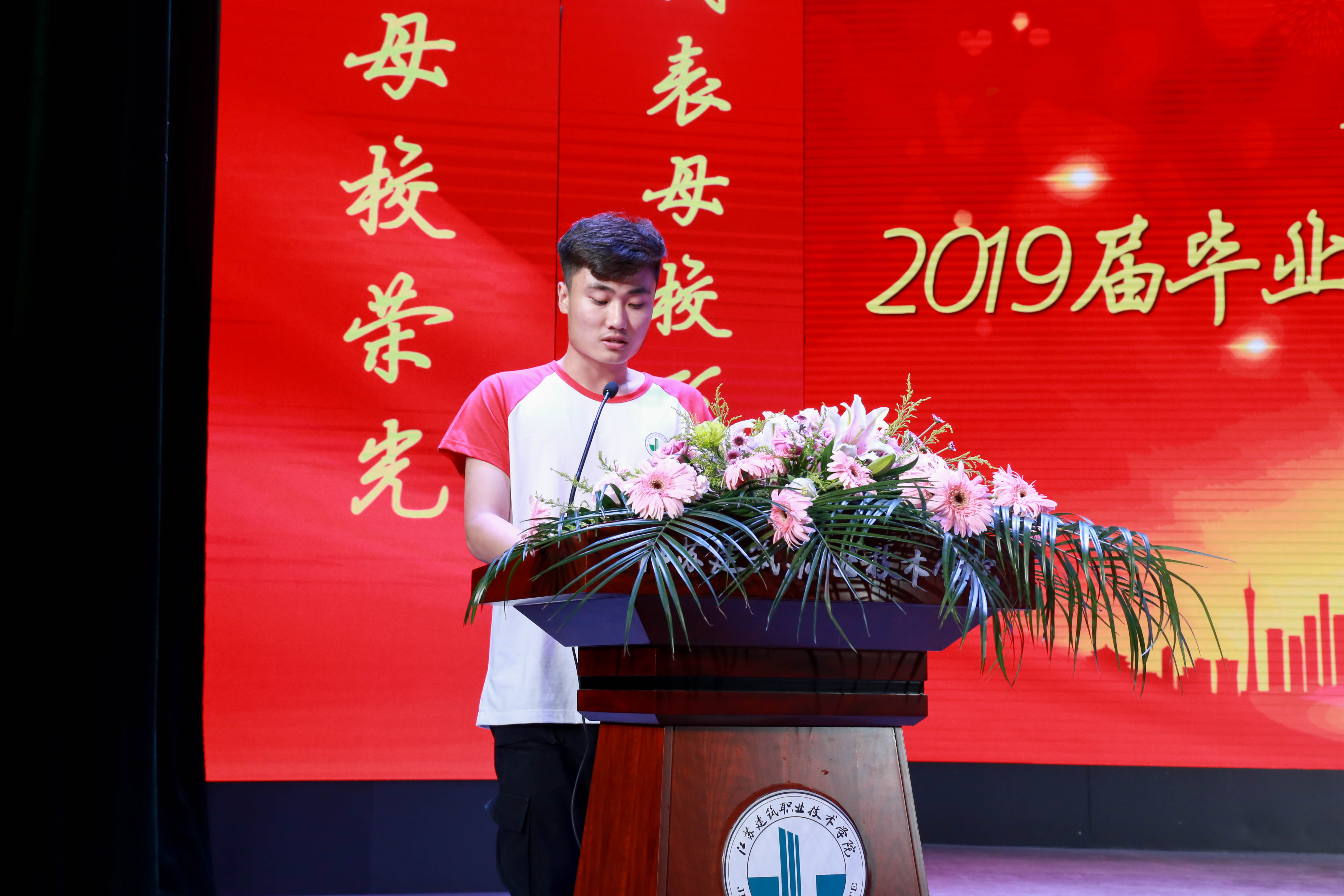 教师代表石峰老师向毕业生表达祝贺与祝福,希望同学们奋斗不息,永不言败。毕业生代表装饰16-3班周德禄同学向公司、老师表达了感激和不舍之情,为学弟学妹加油鼓劲。在校生代表古建18-1班王宇恒同学向学长们快乐毕业送上美好的祝愿,祝学长们前程似锦,平安喜乐。毕业班代表向班主任老师送上鲜花和拥抱,表达了他们对老师深深的谢意。