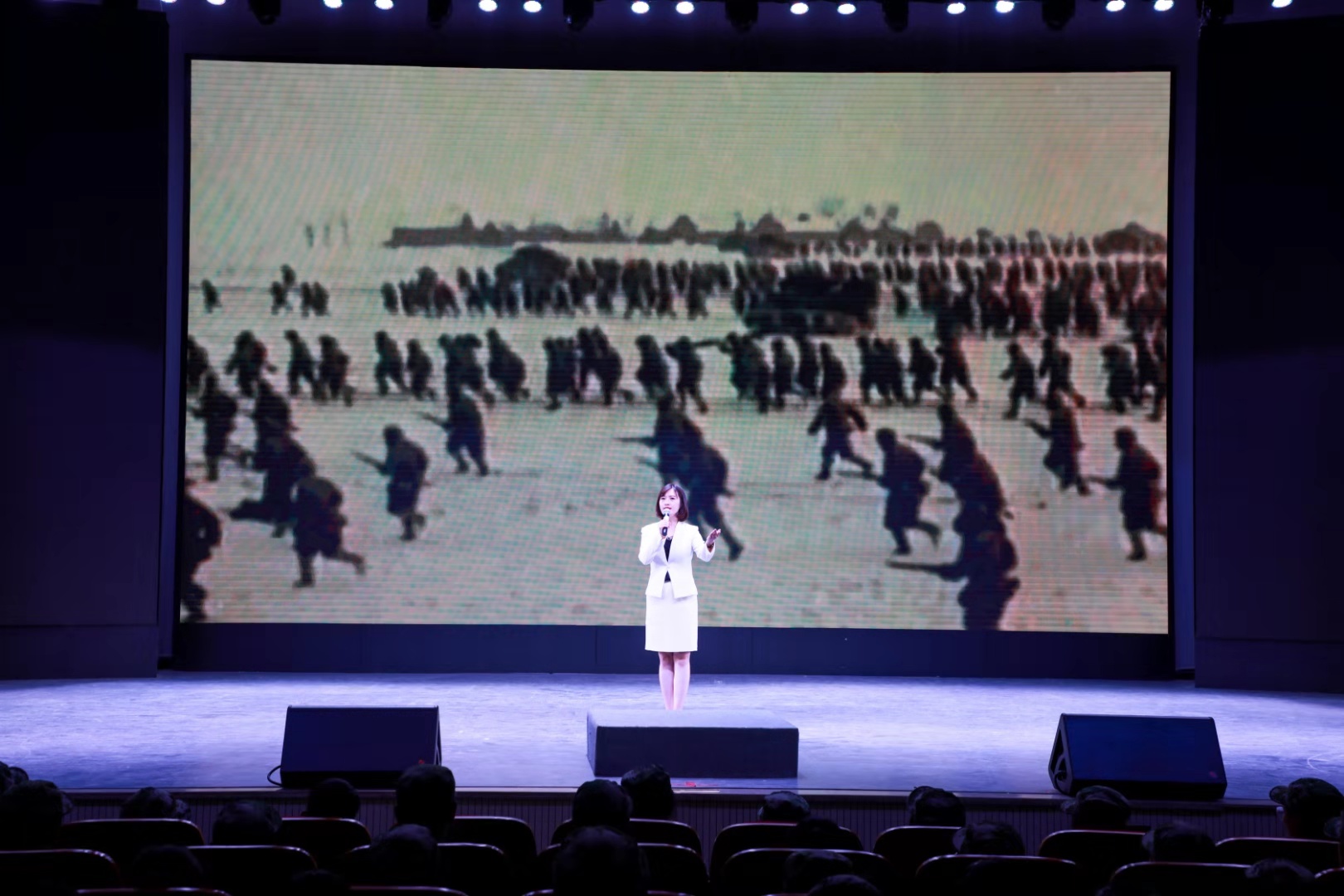 790余名新生在会堂一起观看了爱国纪录片《厉害了,我的国》,聆听全国优秀教育工作者、全国红色故事金牌讲解员李楠老师和胡鑫同学讲述的《人民的胜利》和《太行奶娘》的革命故事。