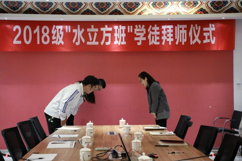 10月26日上午,太阳成tyc33455ccwww“天正班”和“水立方班”学员拜师仪式在公司会议室隆重举行。公司经理陈志东、副经理江向东、天正建筑装饰江苏有限公司总经理朱攀登、江苏水立方建筑装饰设计研究院经理胡艳琴、装饰专业主任杨洁、企业导师及企业班45名学员参加了拜师仪式。在天正装饰办公室主任王洁主持下,员工向指导师傅行拜师礼。