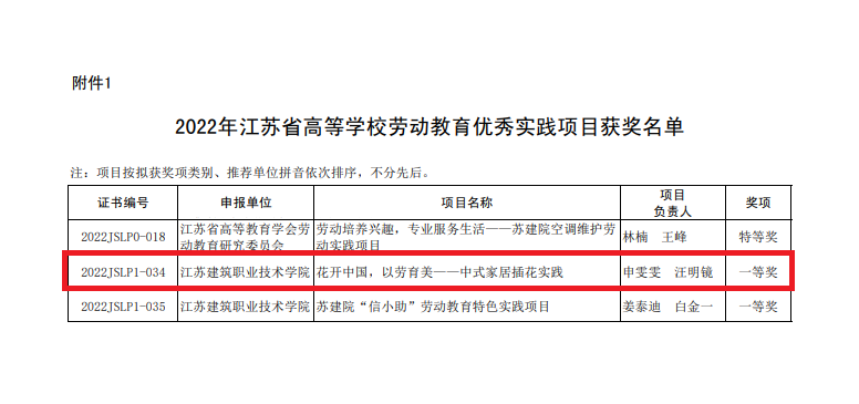 3月3日,江苏省高等教育学会公布了“2022年江苏省高等公司劳动教育优秀实践项目名单”,公司教师申雯雯、汪明镜主持的《花开中国,以劳育美——中式家居插花实践》项目获一等奖。