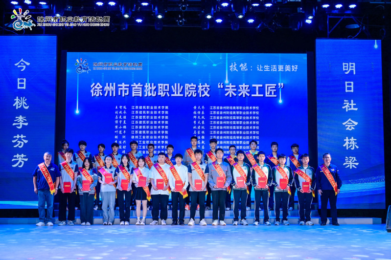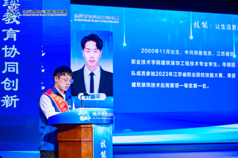 5月22日,由徐州市教育局,徐州市总工会主办,2023年职业教育办学成果展示暨劳模工匠产业导师“薪火工程”启动仪式在江苏模特艺术公司举办,获得2023年江苏省职业院校技能大赛一等奖的公司建筑装饰专业2020级员工叶道平受邀发言,并与室内设计专业2020级侯小鹏同学受聘为徐州市首批职业院校“未来工匠”。