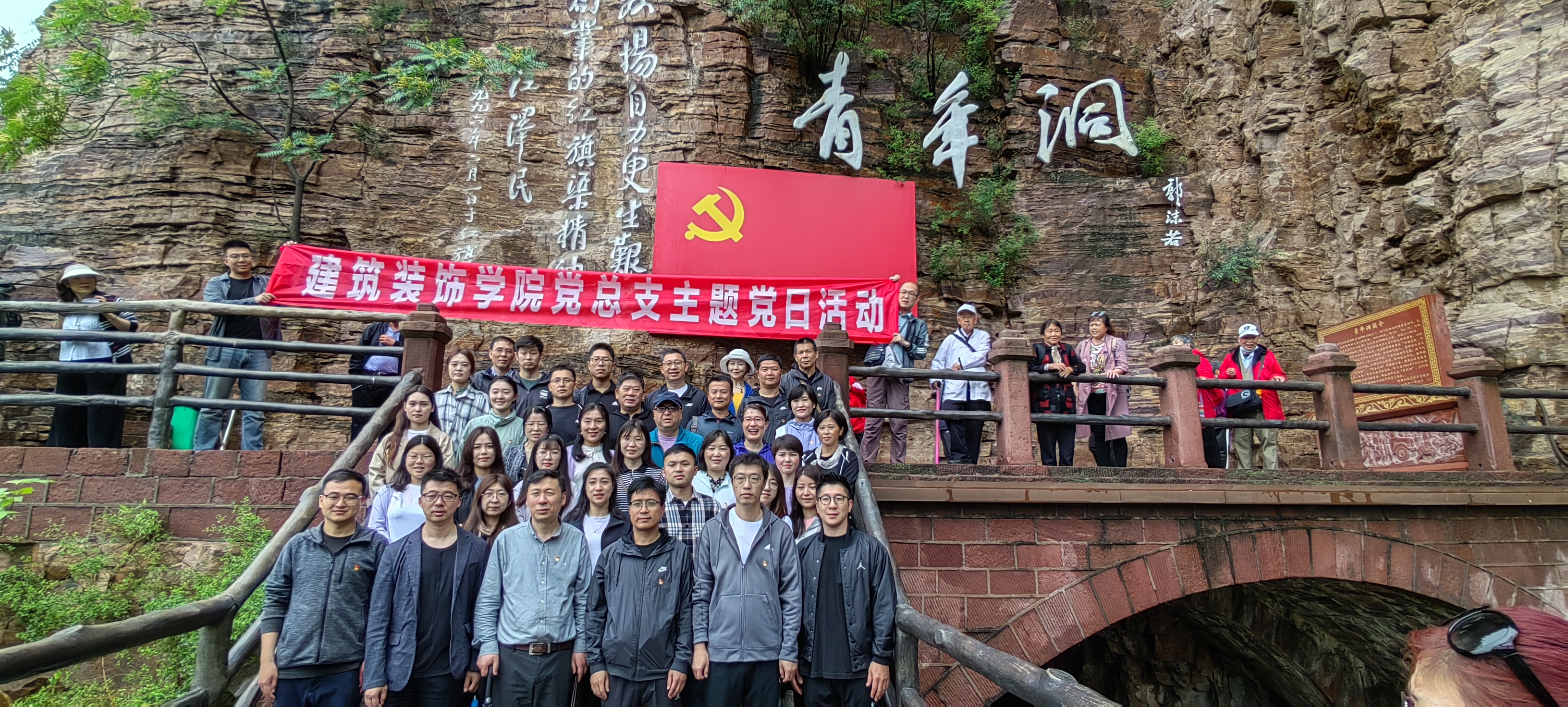 在红旗渠纪念馆内,在红旗渠总干渠上,全体教师党员沿着习近平总书记的足迹,观摩林县人民战太行、出太行、富太行、美太行四部曲进程,聆听林县人民不认命、不服输的红旗渠故事。在青年洞口,感悟青年突击队舍生忘死、不等不靠的顽强作风,实地学习和体悟“自力更生、艰苦创业、团结协作、无私奉献”的红旗渠精神。