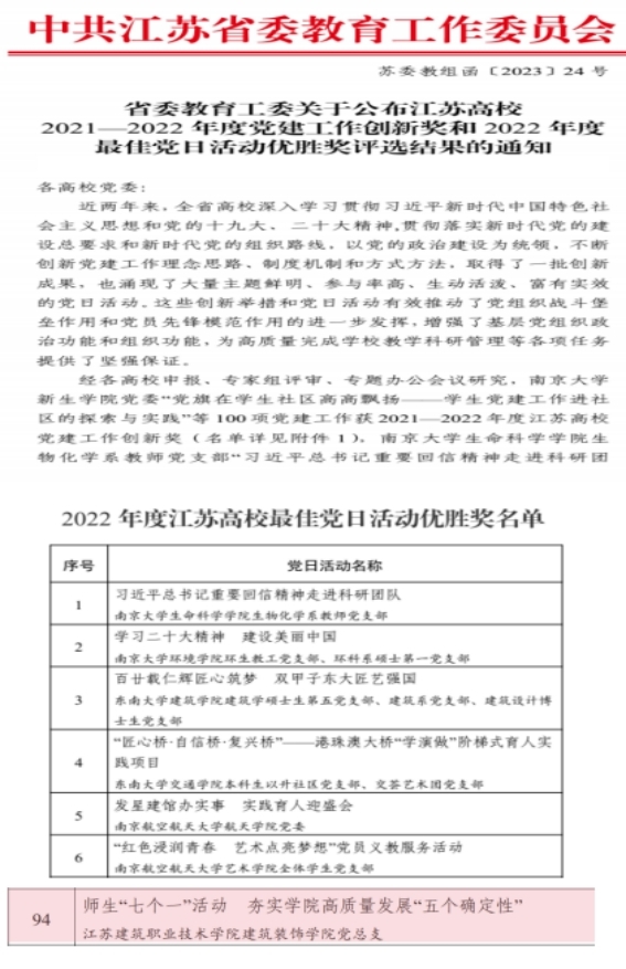 七、江苏省2022年度高校最佳党日活动优胜奖