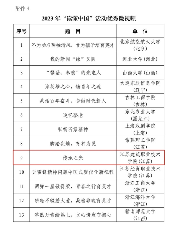 八、2023年“读懂中国”活动中微视频《传承之光》被评为“优秀微视频