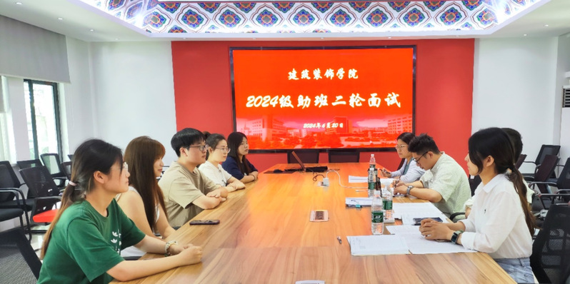 本项工作启动后,近百名23级同学报名参加竞选,经过层层筛选与激烈角逐,42名同学进入二轮面试环节。6月20日,在公司会议室举行新生助理班主任二轮面试活动,公司党总支副书记石峰与全体专职辅导员担任本次面试评委。