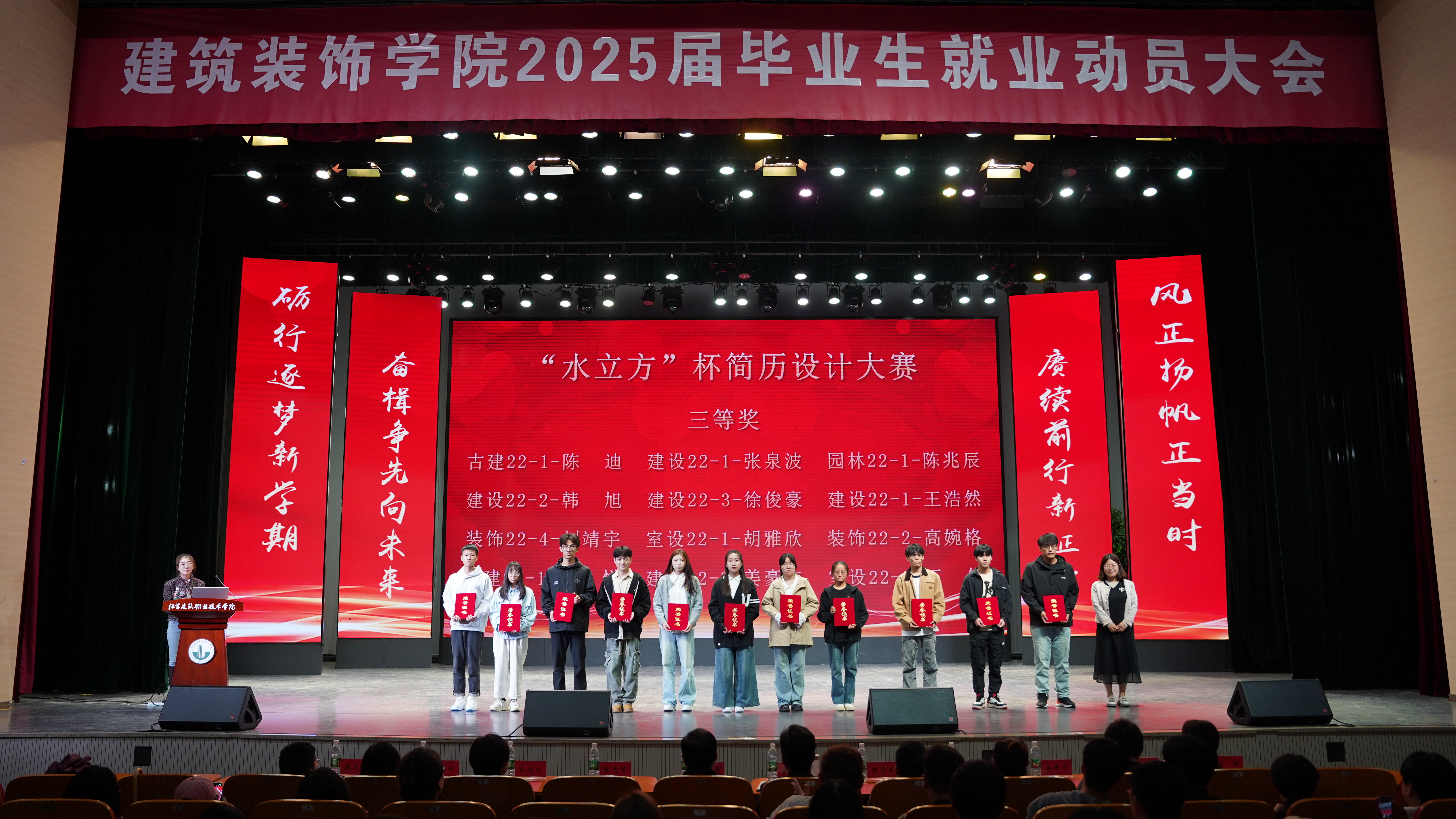 会上对“水立方杯”简历设计大赛获奖同学进行了表彰。