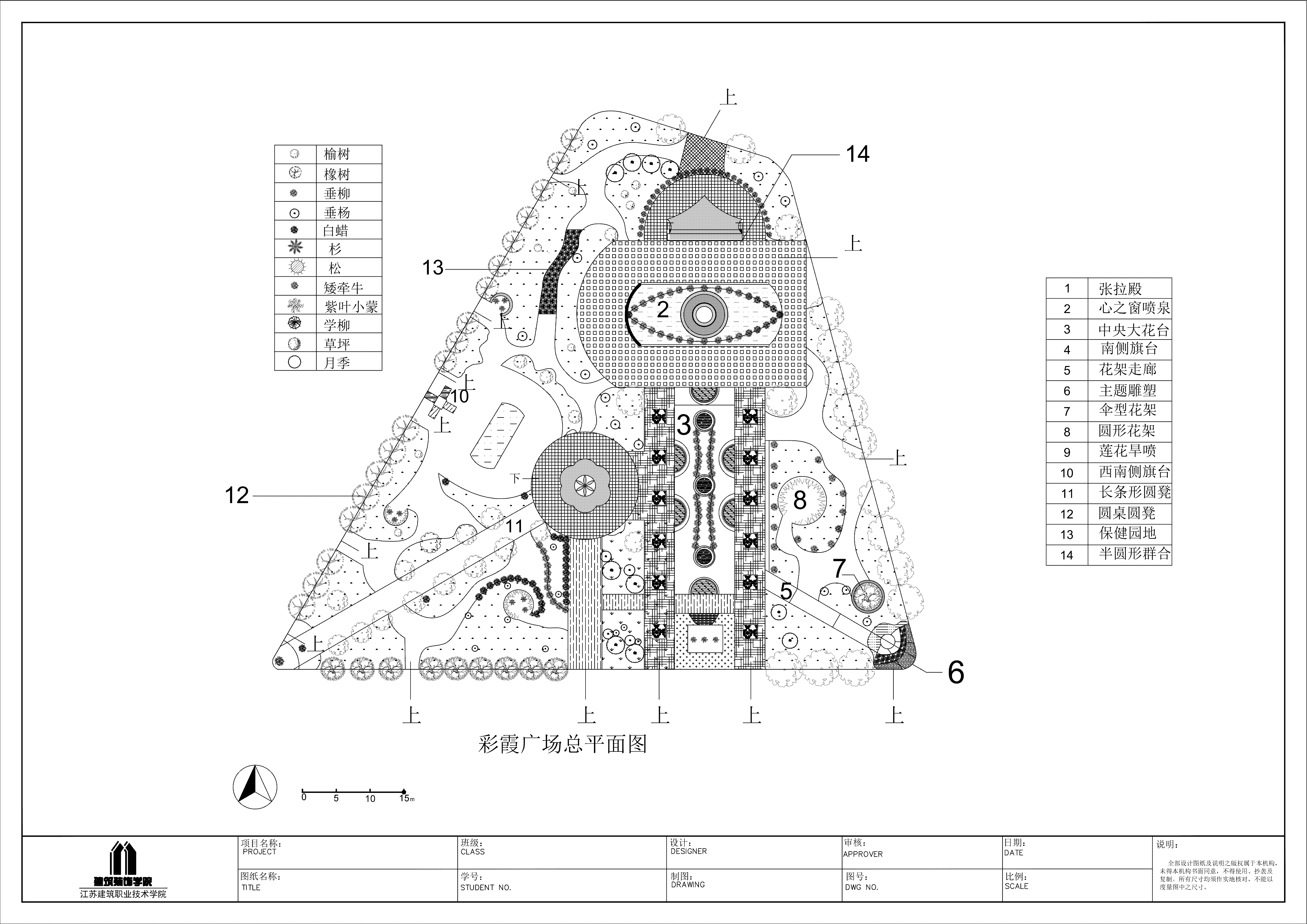 结合环艺专业及该课程的培养目标,我作为授课教师带领员工进行了相应的实训。在这个过程中,员工掌握了基本的CAD应用技术,做到了流畅的应用。而且,作为大一的新生,在没有太多设计基础的前提下,他们愿意挑战有一定难度的图纸。比如,实训项目之“河道驳岸剖面详图”,和“彩霞广场平面”,不仅涉及大量的CAD命令与技巧,还涉及到对技巧的举一反三;同时涉及到对复杂图纸的理解,与绘制流程步骤的理解等。