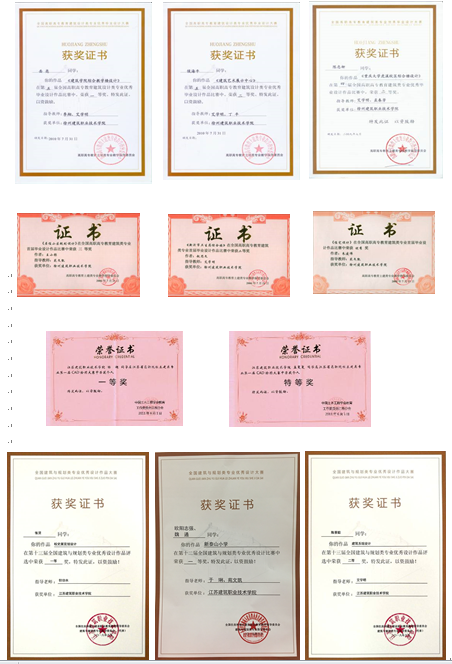 员工经过专业课的学习、训练和企业实习,参加了多项校级、市级、省级的建筑设计大赛,并取得了优异的成绩。